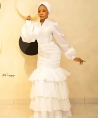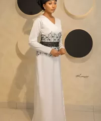 The Galaxy Boubou is an elegant, flowing, marble-patterned gown with sophistication.